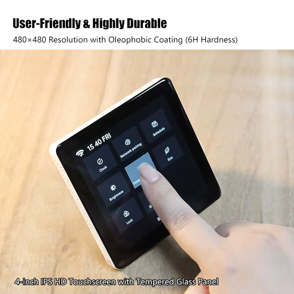 🖥️ 4" IPS Farb-Touch (480×480) – 6H kratzfestes gehärtetes Glas