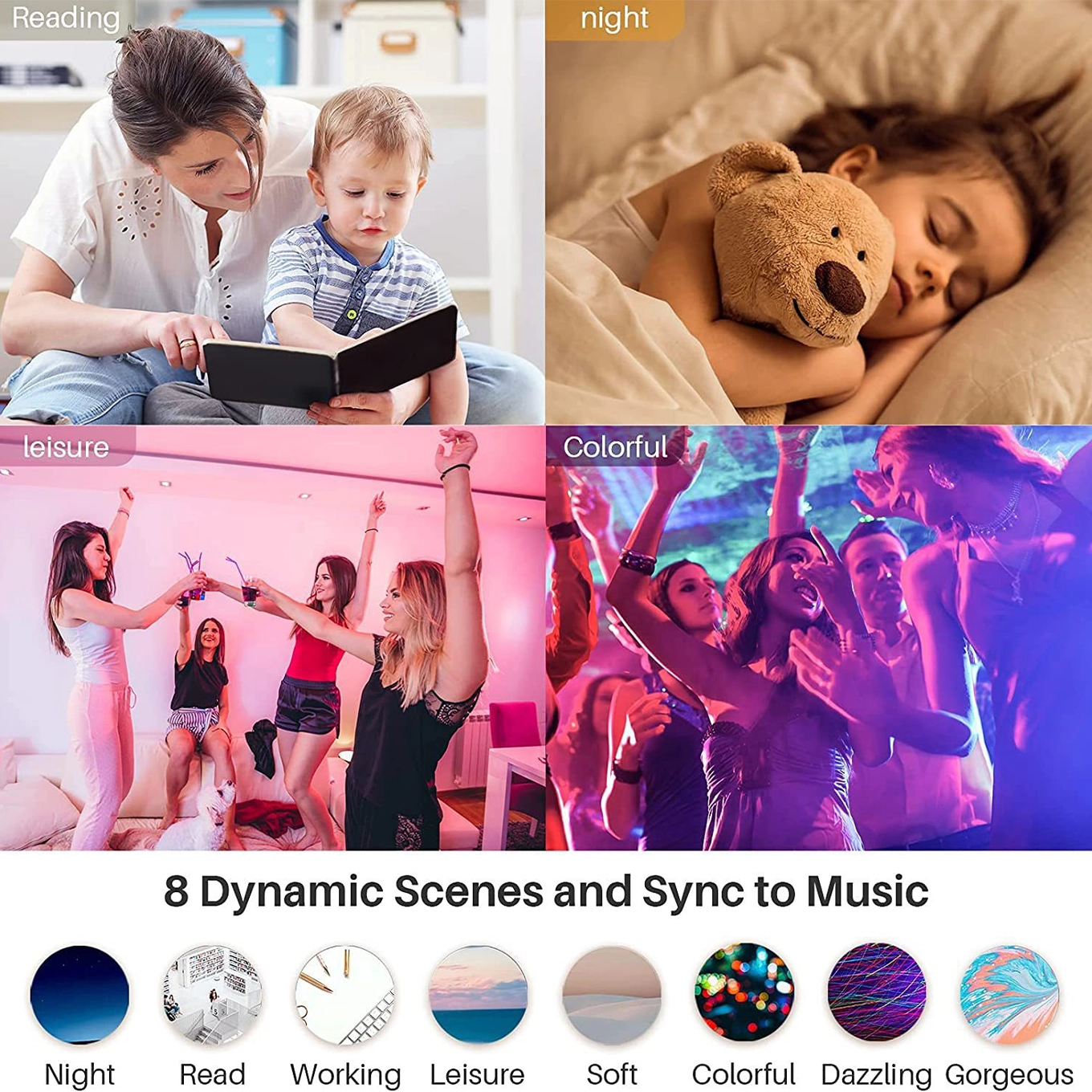 🌈 Dynamische Szenen + Musikmodus: Beleuchtung, die sich mit Musik, Geräuschen und Vibrationen synchronisiert – für Partys und besondere Momente.