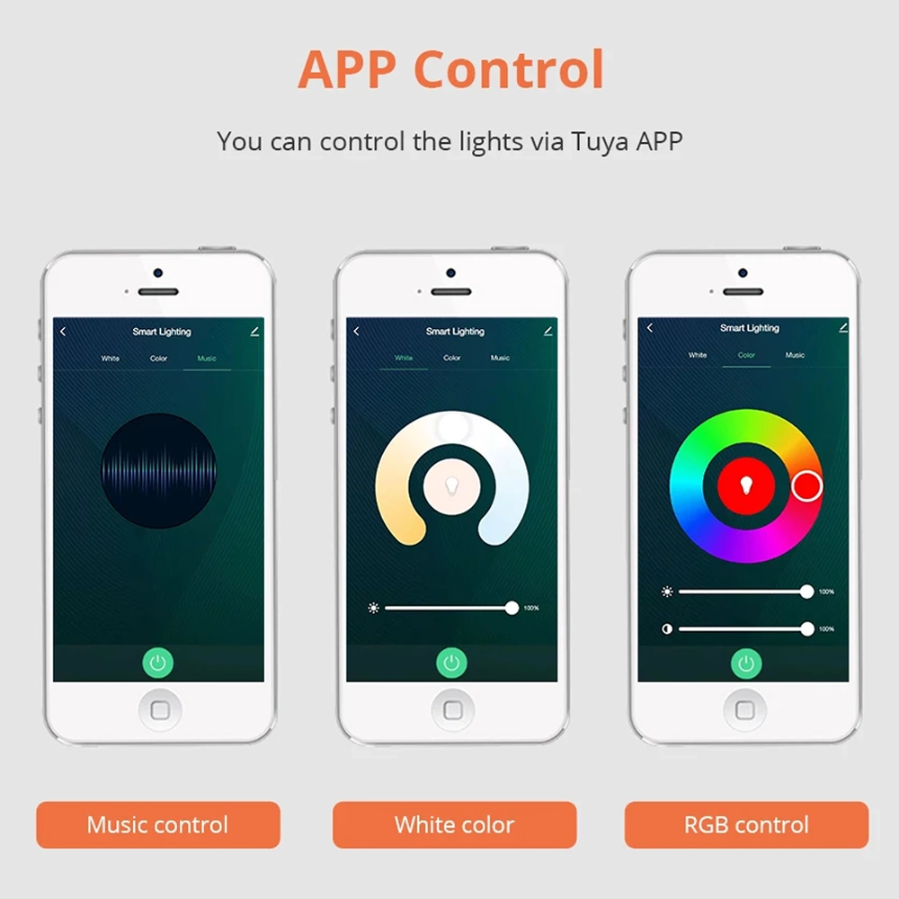 📱 Tuya / Smart Life App-Steuerung: Steuern Sie Farben, Intensität, Timer und Gruppen direkt von Ihrem Smartphone aus.