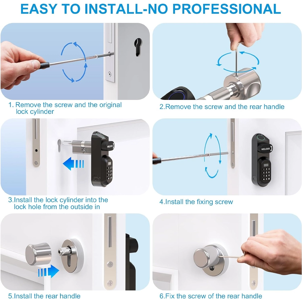 Die Installation des WELOCK Smart Locks ist kinderleicht. Sie müssen weder die Nut bearbeiten noch Löcher bohren. Sie können es in weniger als 15 Minuten selbst installieren, ohne dass besondere Kenntnisse erforderlich sind.