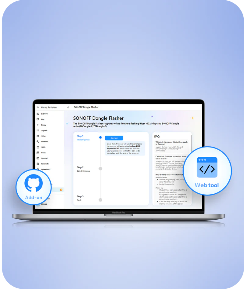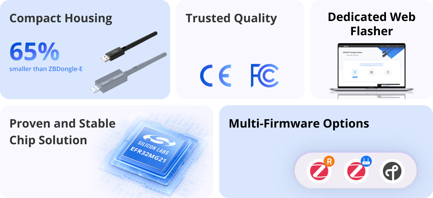 ⚙️ Einfaches Firmware-Flashing: Unterstützt das SONOFF Dongle Flasher Tool, um die Firmware mit einem Klick zu aktualisieren oder zu ändern, ohne komplexe Software.