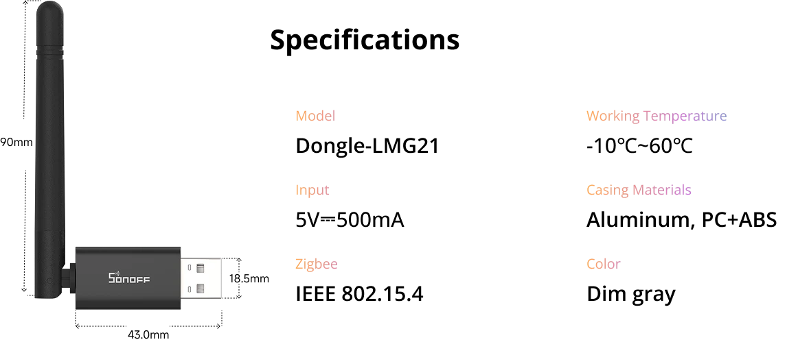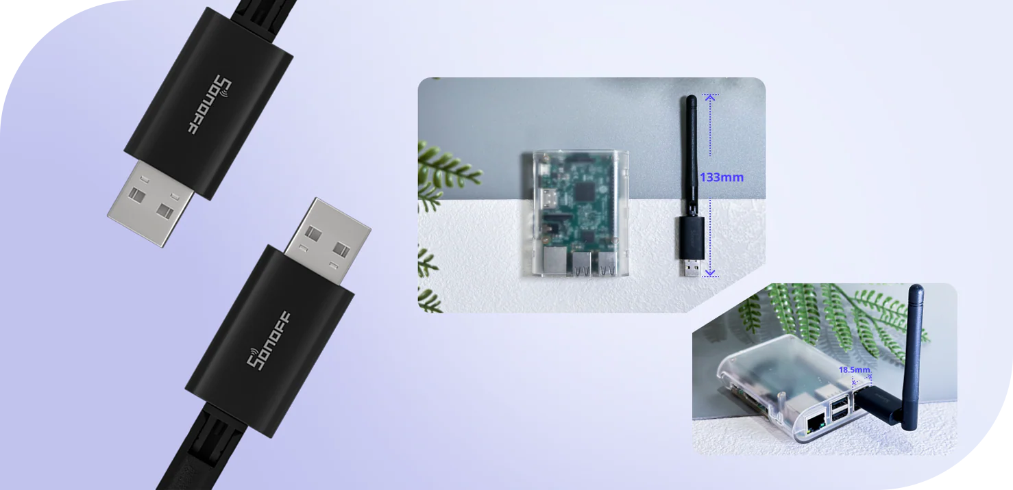 Der Sonoff MG21 ZigBee USB-Dongle besticht durch sein schlankes, ultraschallgeschweißtes Design , das für eine robuste, langlebige und schraubenlose Konstruktion sorgt. Dank seiner geringen Größe und des stromlinienförmigen Designs lässt er sich flexibel an jedem USB-Anschluss installieren , selbst bei beengten Platzverhältnissen oder in Kombination mit Raspberry Pi, NAS und Mini-PCs. Mit einer Länge von nur 133 mm und einer Dicke von 18,5 mm fügt sich der MG21 Dongle nahtlos in jede Umgebung ein und bietet maximale Leistung in einem kompakten, modernen Gehäuse.