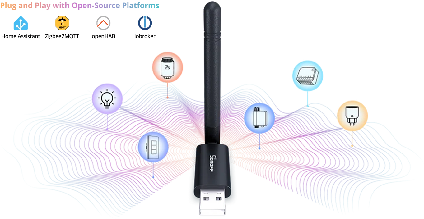 Der Sonoff MG21 ZigBee USB-Dongle fungiert als leistungsstarker ZigBee-Koordinator für gängige Open-Source -Plattformen wie Home Assistant , Zigbee2MQTT , openHAB undioBroker . Dank Plug & Play -Technologie lassen sich Geräte verschiedener Hersteller und Protokolle (ZigBee, Thread und Matter) einfach hinzufügen und steuern. Der Sonoff MG21 Dongle integriert sich nahtlos in das gesamte Sortiment an SONOFF Smart-Home- Geräten – wie Schalter, Bewegungsmelder, smarte Steckdosen und WLAN-Relais – und ermöglicht so die zentrale Steuerung Ihres gesamten Smart Homes.