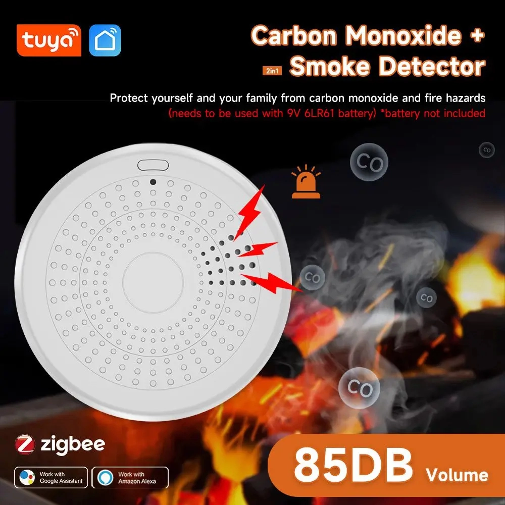Tuya 2-in-1 Smart ZigBee Kohlenmonoxid- und Rauchmelder mit 85dB-Alarm