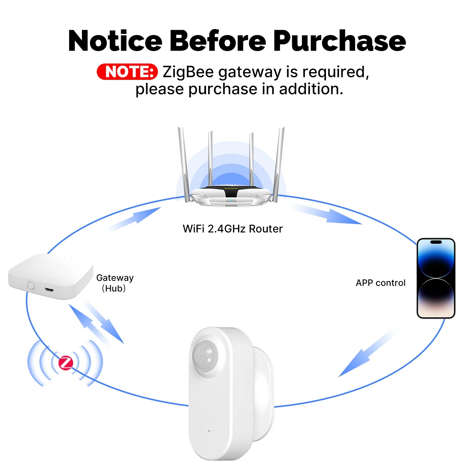 Dieser Sensor kommuniziert über Zigbee und benötigt ein Zigbee-Gateway oder einen Hub für die Verbindung mit der Tuya /Smart Life App. Das 2,4-GHz-Heim-WLAN wird nur für den Hub und Ihr Smartphone benötigt: Ohne Zigbee-Hub kann der Sensor nicht hinzugefügt, gesteuert oder automatisiert werden. Wählen Sie ein kompatibles Tuya Zigbee-Gateway und koppeln Sie es anschließend über die App.