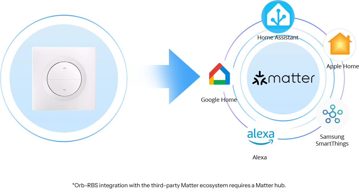 Mit Sonoff Orb-RBS betreten Sie die Zukunft der universellen Hausautomation : Dank der vollständigen Unterstützung des Matter -Protokolls lässt er sich nahtlos in die wichtigsten Smart-Home-Ökosysteme wie Apple Home , Google Home , Amazon Alexa , SmartThings und Home Assistant integrieren. Steuern Sie Ihre Rollläden mit einer einzigen App, kombinieren Sie Geräte verschiedener Hersteller und erstellen Sie mühelos intelligente Automatisierungen. Die Matter-Integration bietet zudem eine stabile, schnelle und sichere Verbindung – auch ohne externe Cloud-Dienste. Matter Hub erforderlich.
