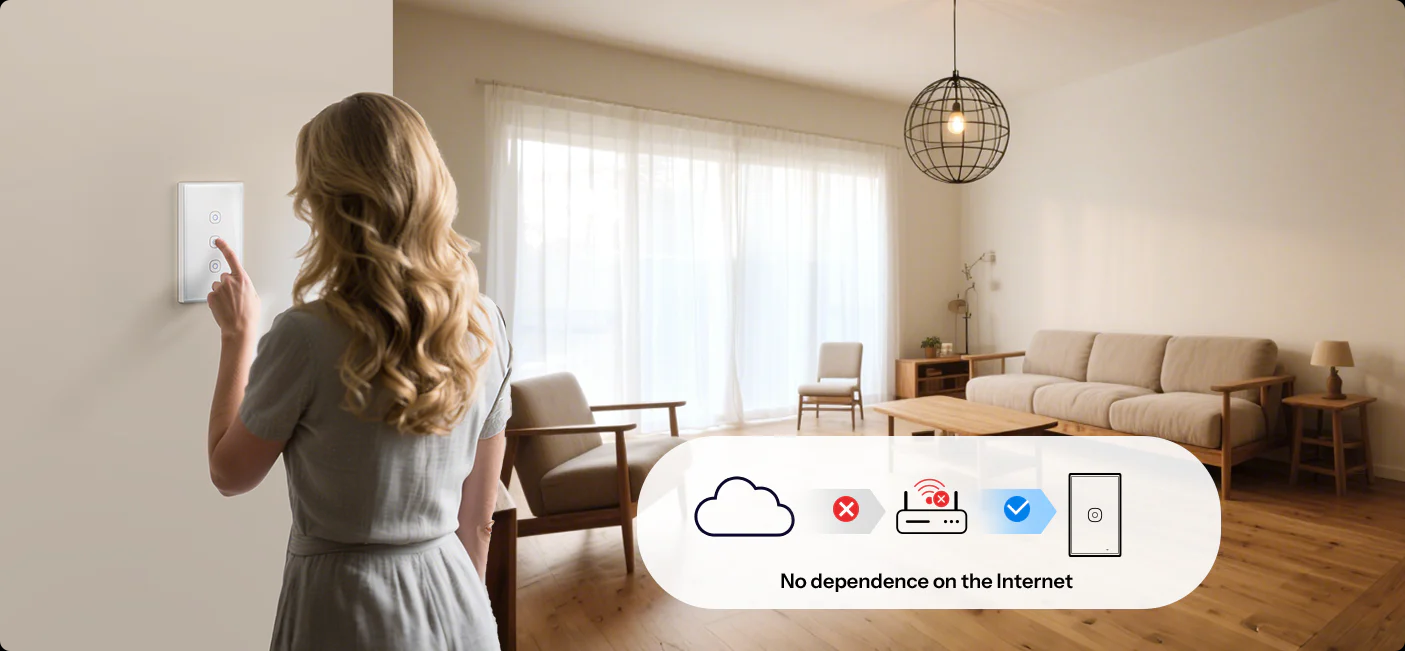 Dank der lokalen Steuerung funktioniert der TX Gen2-Switch auch ohne Verbindung oder Server weiter und gewährleistet so jederzeit Zuverlässigkeit und Komfort.