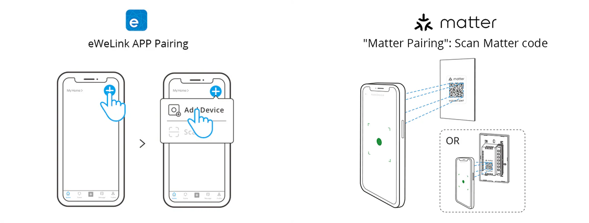 Es stehen zwei Kopplungsmethoden zur Auswahl. Die erste besteht darin, den Sonoff TX 2Gen über die eWeLink -App hinzuzufügen. Die zweite besteht darin, das Gerät über eine Matter-kompatible App hinzuzufügen.