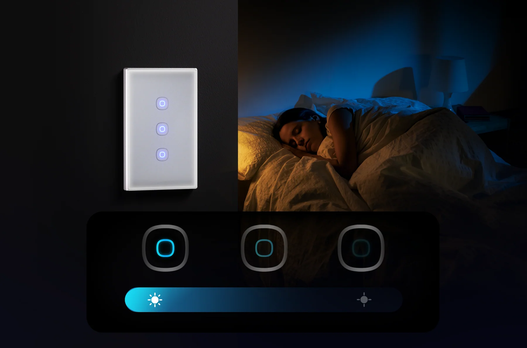 Der Sonoff TX Gen2 verfügt über eine einstellbare LED-Hintergrundbeleuchtung, die Ihnen zu jeder Tageszeit maximalen Komfort bietet. Sie können die Intensität wählen, die Ihren Bedürfnissen am besten entspricht: heller, um den Schalter im Dunkeln leicht zu finden, oder dunkler, um Ihren Schlaf nicht zu stören. Eine Lösung, die Funktionalität und modernes Design vereint und das tägliche Benutzererlebnis verbessert.