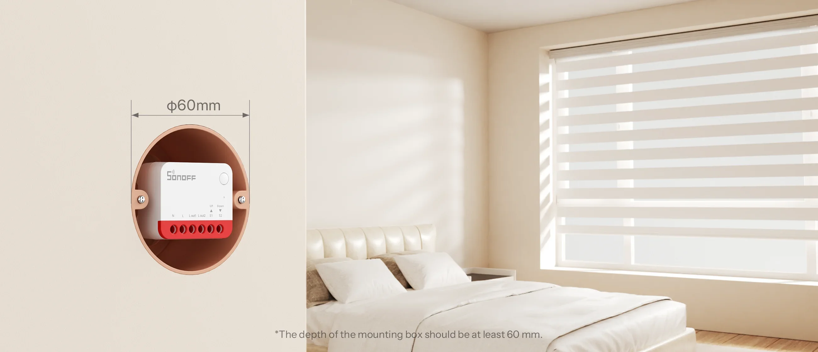 📏 Ultracompact ontwerp: slechts 60 mm behuizing, geschikt voor bijna alle standaard EU-inbouw- of inbouwdozen.
