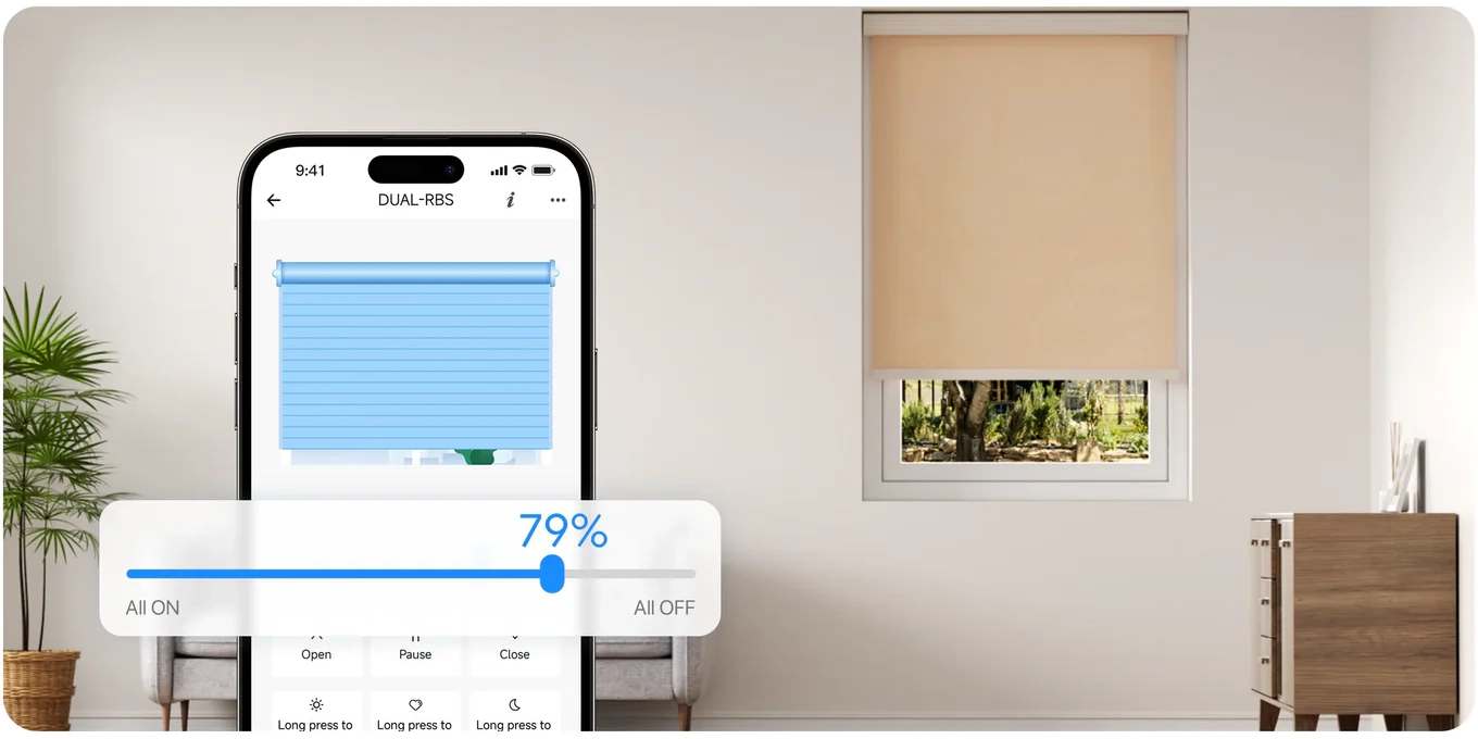 Laat uw rolgordijnen precies stoppen waar u ze wilt hebben - geen overstrekking of halverwege stoppen meer. Dankzij intelligente bewegingskalibratie leert het systeem de volledige lengte van uw rolgordijn, zodat elke opening of sluiting soepel, nauwkeurig en perfect verloopt.